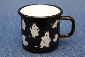 Muumi muki-peltimuki-musta muumimuki-emalimuki-keräilymuki