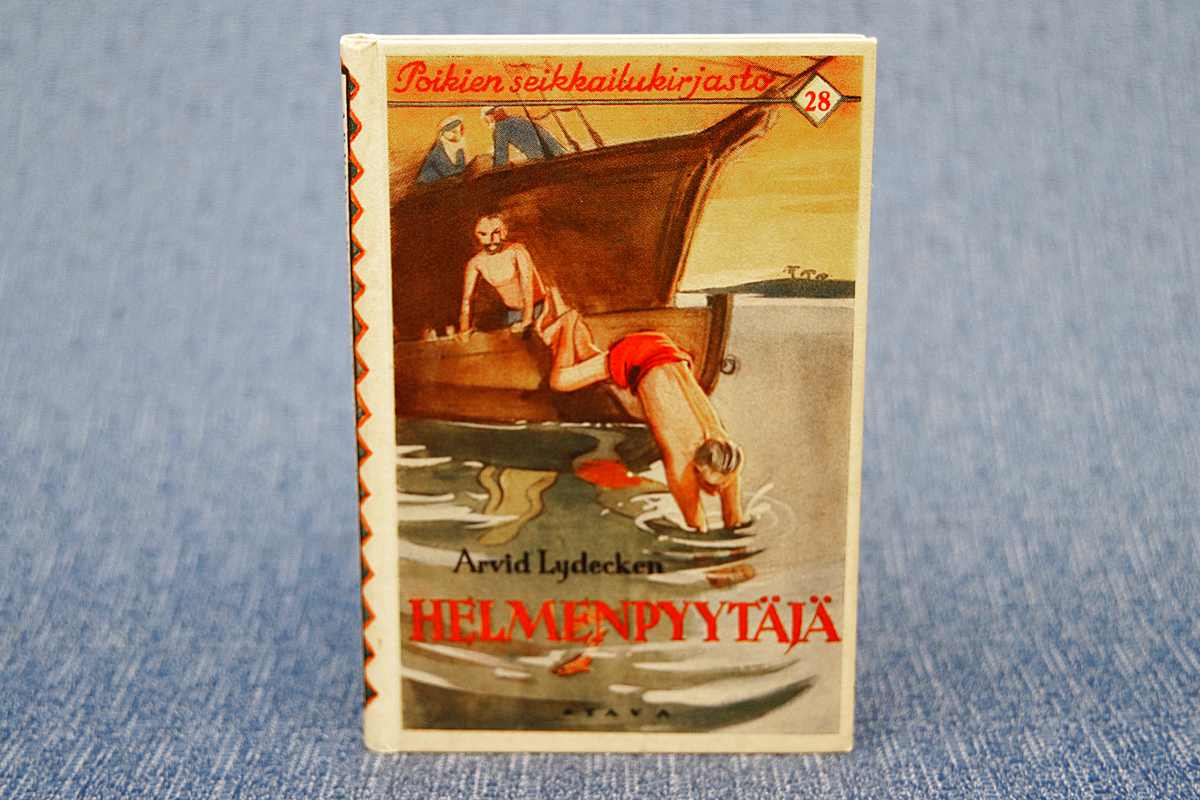 Suorastaan suloinen poikien seikkailukirja Arvid Lydeckenin Helmenpyytäjä. Julkaistu vuonna 1931 ja kuulunut Poikien Seikkailukirjasto -sarjaan. Hyväkuntoinen ensimmäinen painos. Tuon ajan hengen mukaisesti nuorten seikkailukirjoissa korostettiin rohkeutta ja neuvokkuutta ja niin tässäkin tarinassa. Kirjan hinta 15 euroa.