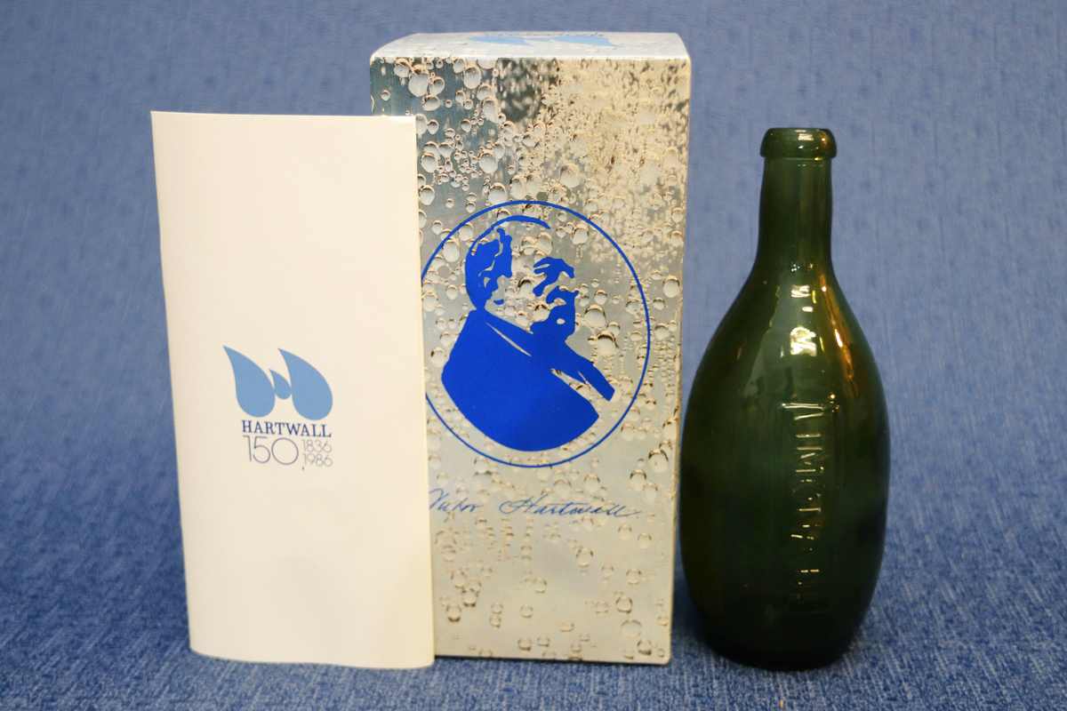 Hartwall 150 vuotta juhlapullo alkuperäpakkauksessa. Mukana myös historiikkilehtinen. Pullo pakkauksineen on vuodelta 1986, jolloin Hartwall täytti 150 vuotta. Hinta 10 euroa.