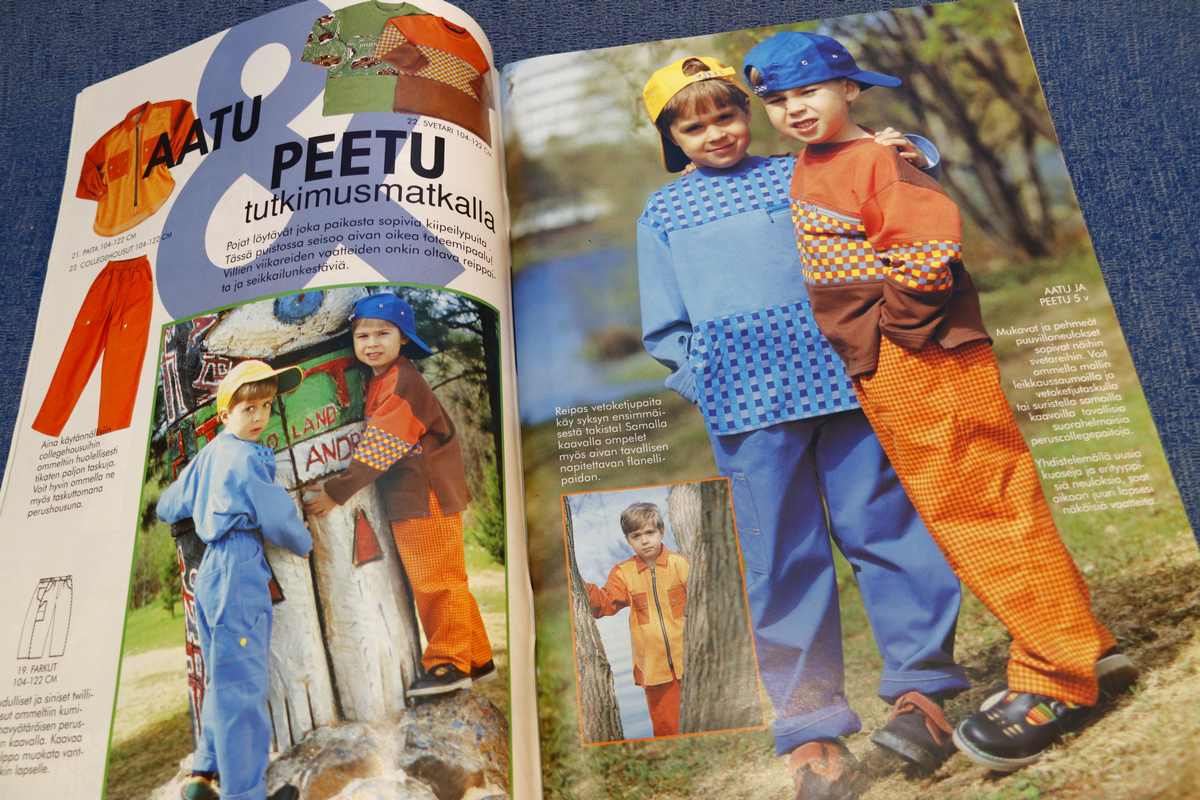 Avainsanat tuotteelle kaavalehti, lasten muoti- ja kaavalehti, lastenvaatteiden kaavat, Muotimuksu, Muotimuksu 3/98, ysärimuoti