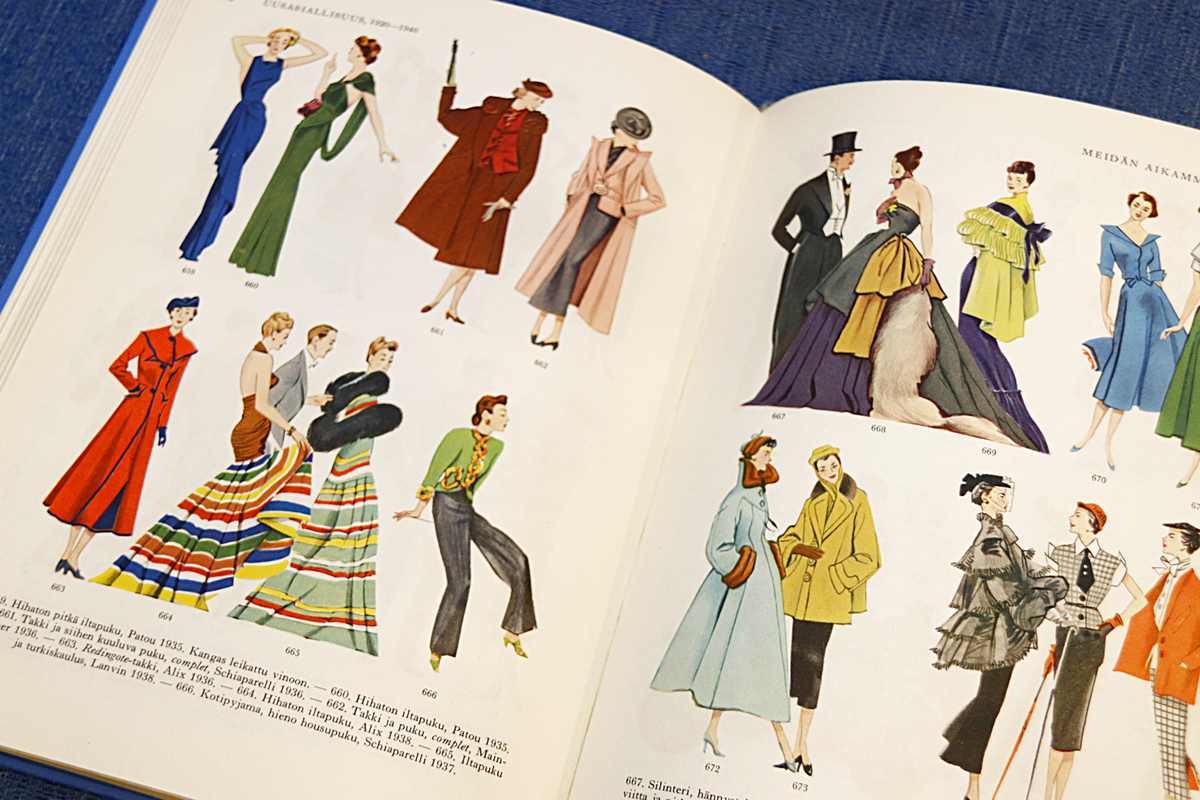 Muotipuku kautta aikojen. Kirja tarjoaa kiinnostavan katsauksen vaatemuotiin kautta aikojen. 1.painos vuodelta 1957. Ollut oppikirjana aikoinaan, sillä kirjassa on Taivalkosken ammattikoulun leima ja joitakin alleviivauksia. Kannet kuluneet. Hieno kuvitus. Kirjan hinta 5 euroa.