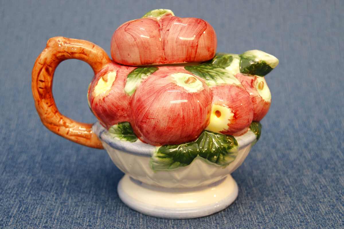 Avainsanat tuotteelle erikoinen kannu, kannu, omenakannu, omppukannu, posliinikannu, värikäs kannu