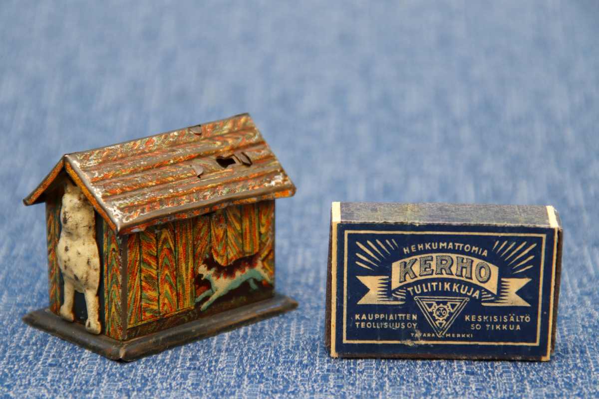 Vanha peltinen säästölipas noin 1930-luvulta. Todella pienikokoinen, kakkoskuvassa lipas on tulitikkulaatikon vieressä. Korkeus 5 cm ja muut mitat 6,5 x 4,4 cm. Ajanpatinaa kuten kuvista näkyy. Avain ei ole enää tallessa. Peltinen säästölipas on noin 1930-luvulta ja harvinainen. Hinta 15 euroa.